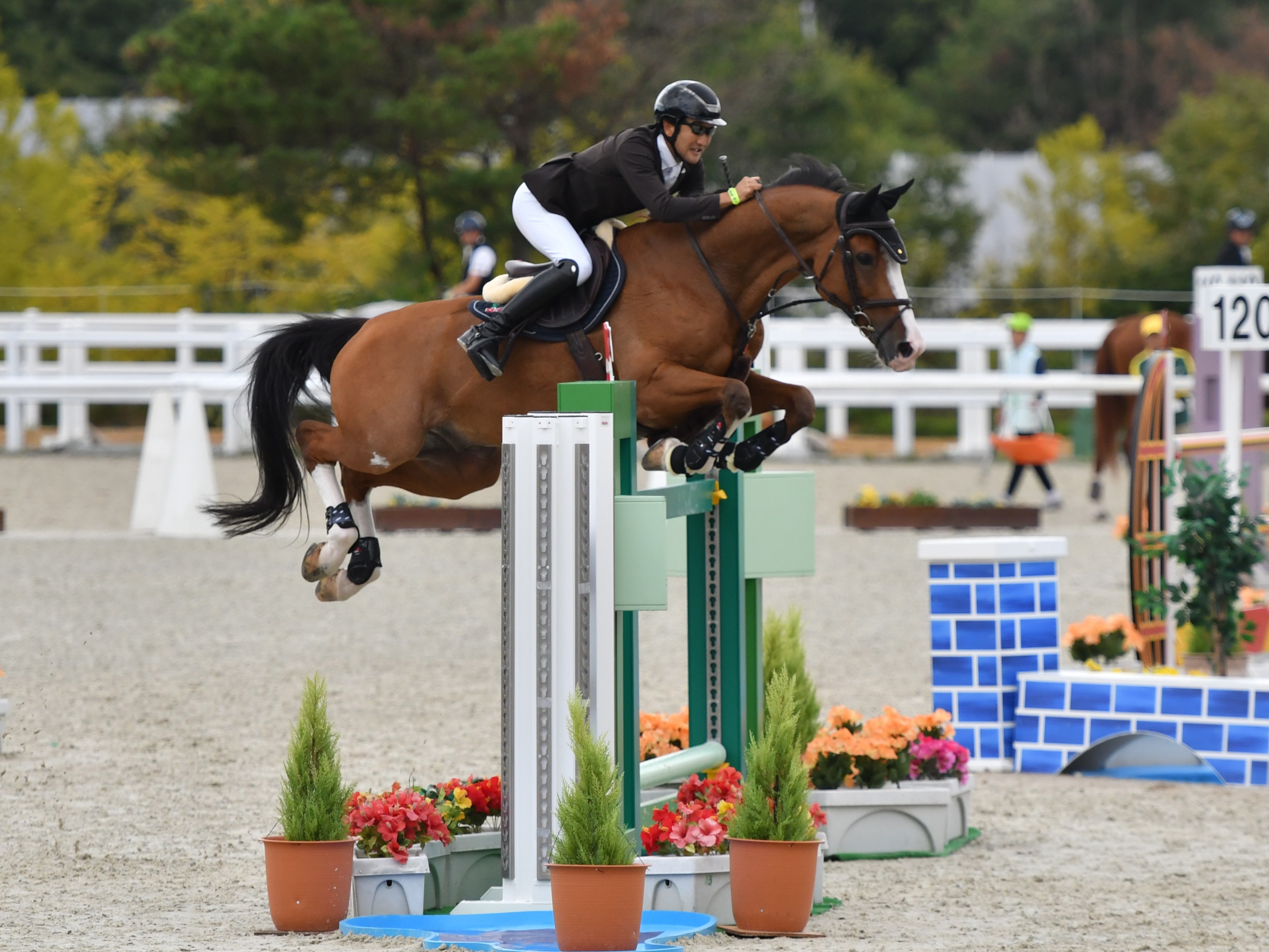 馬場馬術と障害馬術の2種目で行うこの競技には16人馬が出場しています。初日の馬場馬術競技でトップに立ったのは減点30.4の片山淳&ラッキーユー7(徳島県)、2位は減点30.7の篠原正紀&クアトロS(東京都)、3位は減点31.3の水山大輔&プライムZ(岐阜県)と続いています。