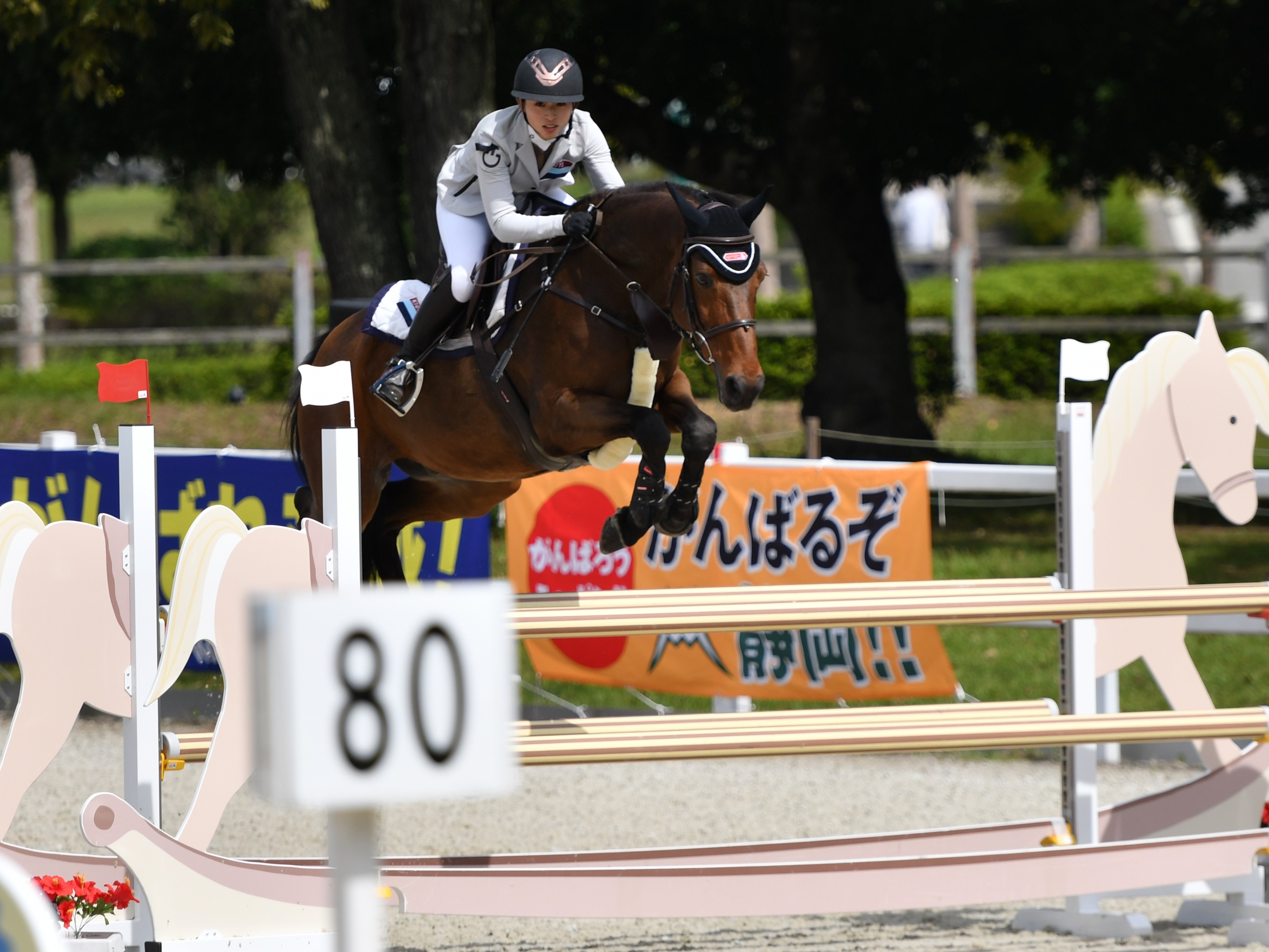 長丁場の全長890mに18障害(20飛越)が設置されたダービー競技には20人馬が出場し、このコースを完走した3人馬によるジャンプオフが成立。長町柚愛&ルーチャット(長野県)が41.50秒でダブルクリアランドして優勝、2位は49.70秒の原田祈璃&ヴァリディリホ(鹿児島県)、3位は減点8の髙田春来&サントリーニ(京都府)となりました。