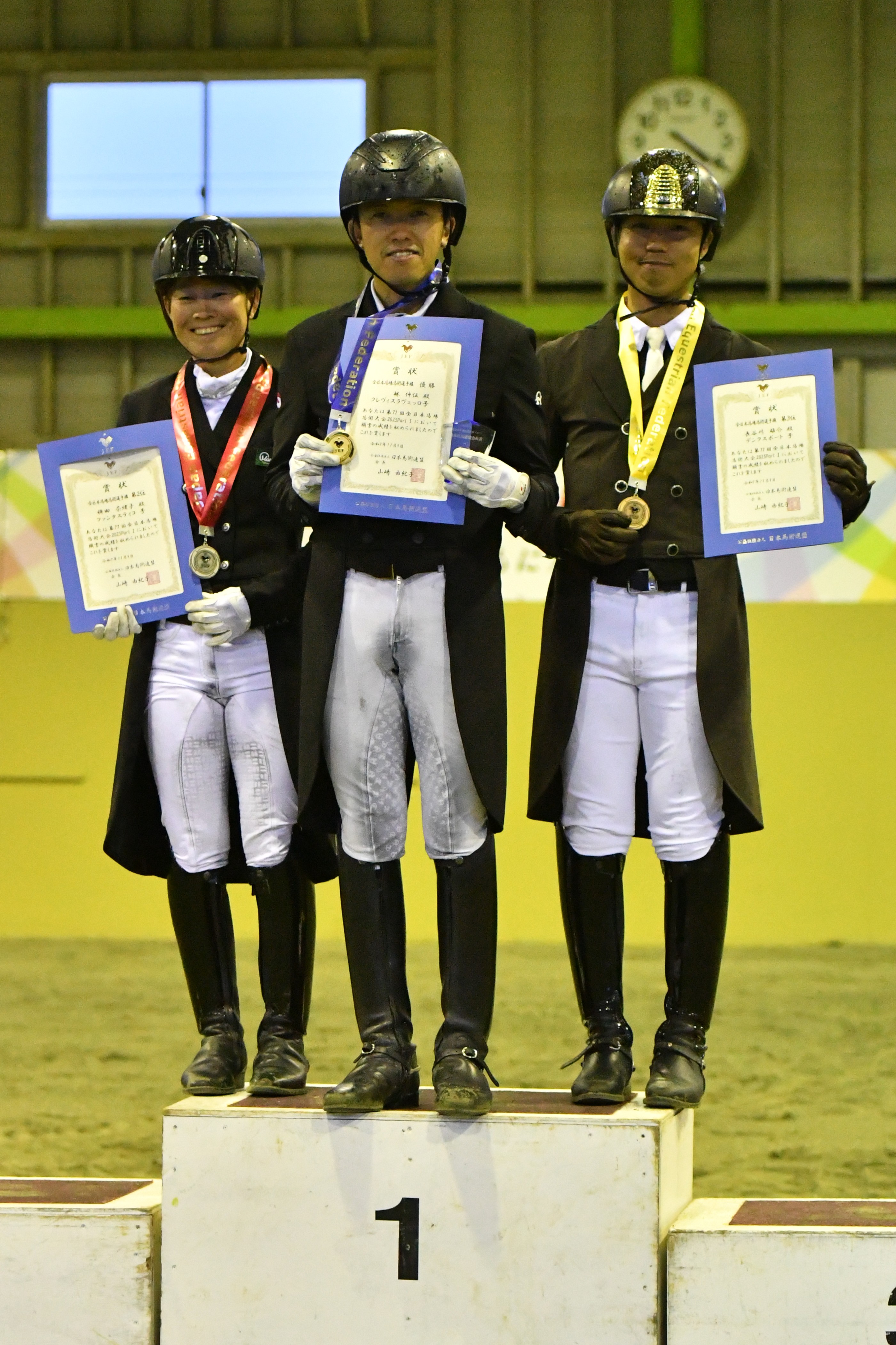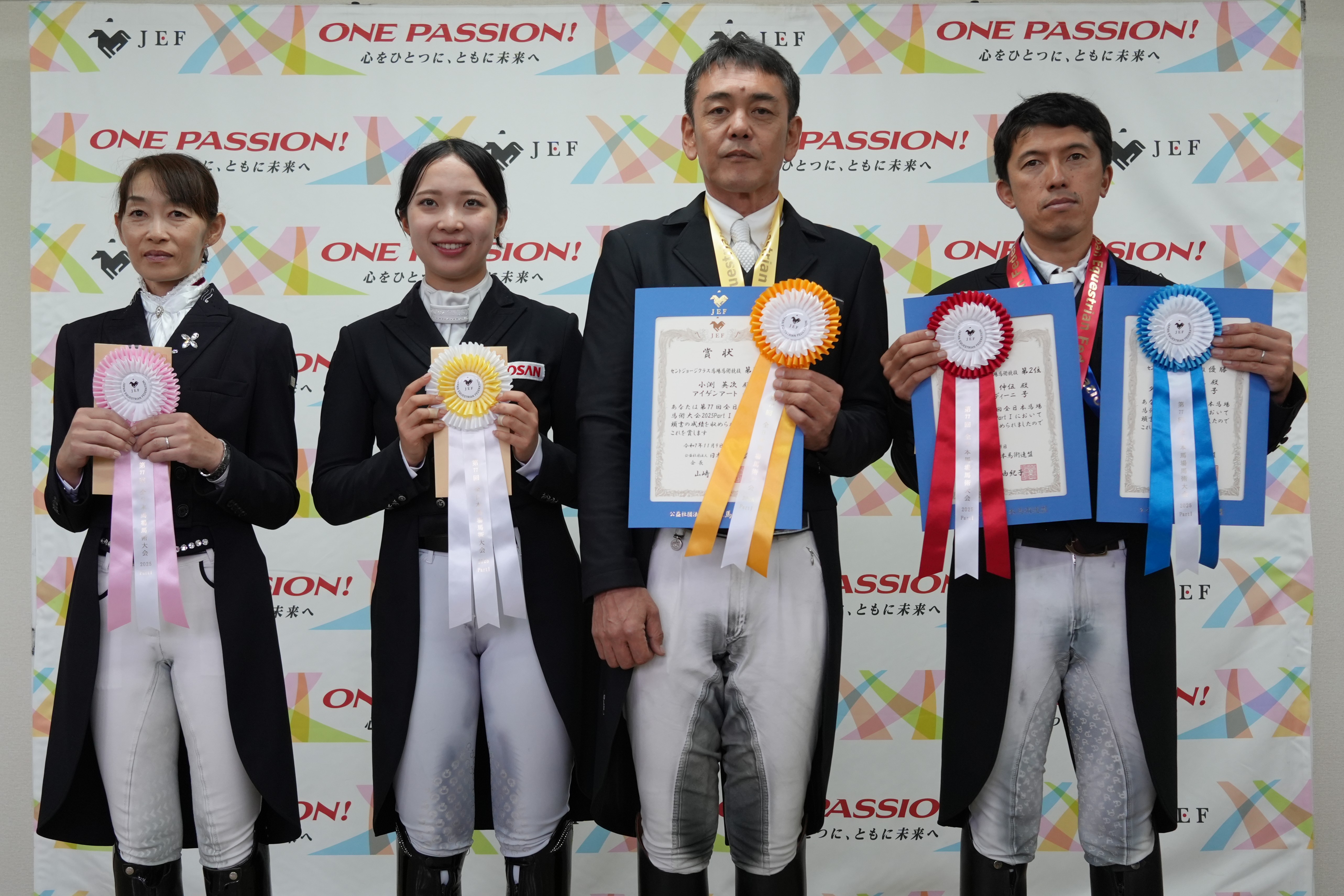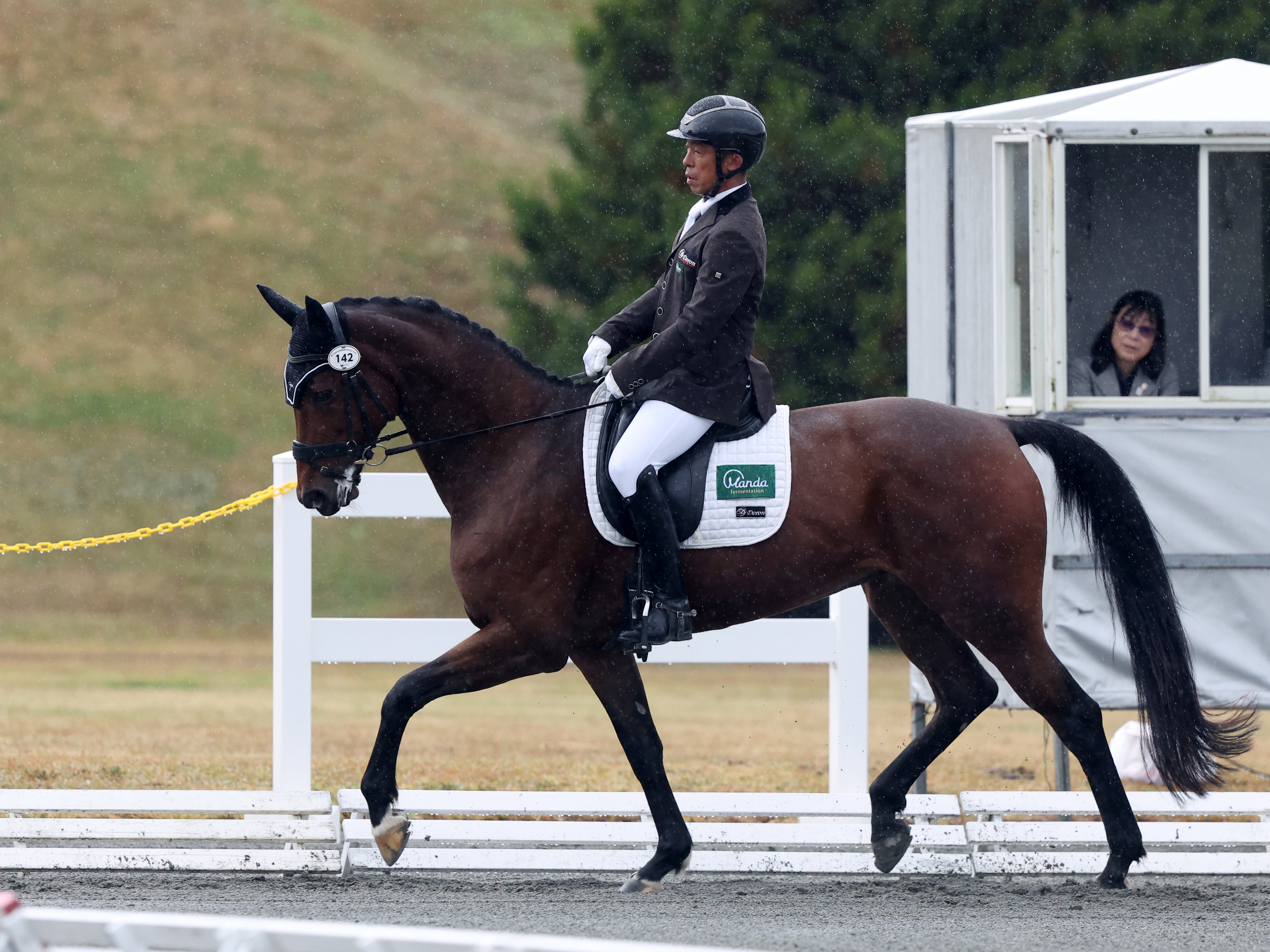 初日の規定演技では2位だった林伸伍&クレヴィスラヴェッロ(ニシワキステーブル)が今日の自由演技で72.395%をマークして合計138.917ポイント(66.522+72.395)で優勝しました。林選手は3連覇して自身6回目の選手権制覇となりました。2位は136.765ポント(66.775+69.990)の稗田奈緒子&ファンタスティコ(リトルホースクラブ)、3位は長谷川雄介&デンクスポート(Effort Stable)が136.527ポイント(66.087+70.440)となりました。また、この競技に出場した唯一の内国産馬、サトノオマージュは吉田匡慶(JRA競馬学校)とのコンビで131.924ポイントを獲得して4位でした。