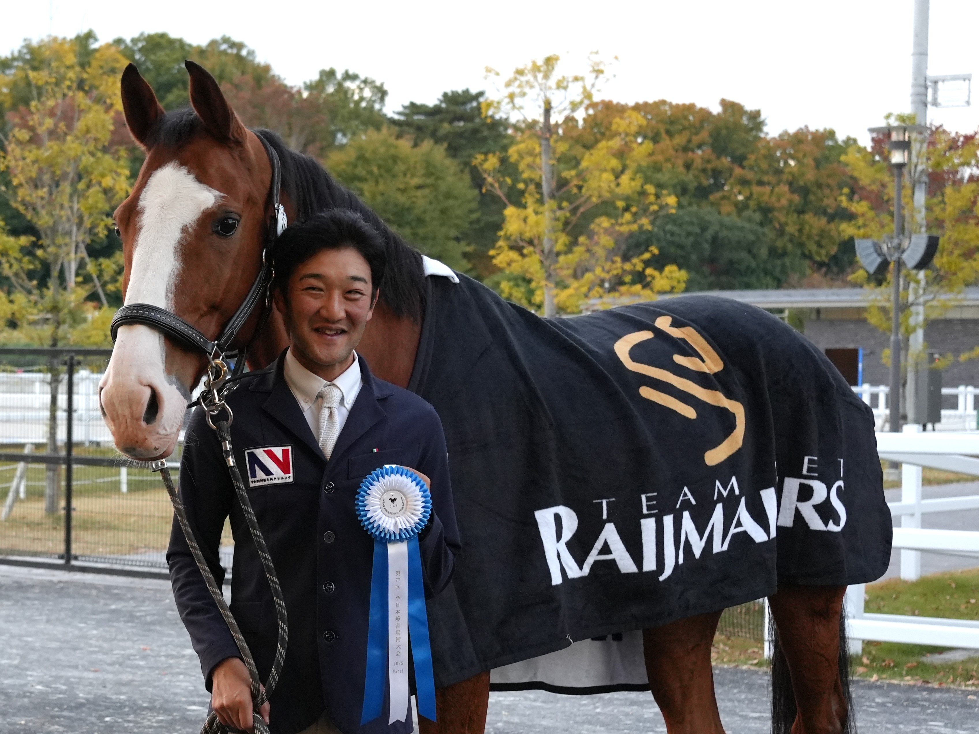 大障害飛越競技は26人馬中4人馬が減点0でゴール、73.33秒の川口大輔&サムライブルー(ライディングクラブフジファーム)が1位、74.38秒の草薙達也&カスカーザ(座間近代乗馬クラブ)が2位、74.52秒の川合正育&プロミスZ(株式会社日本電気保安協会馬術部)が3位でした。