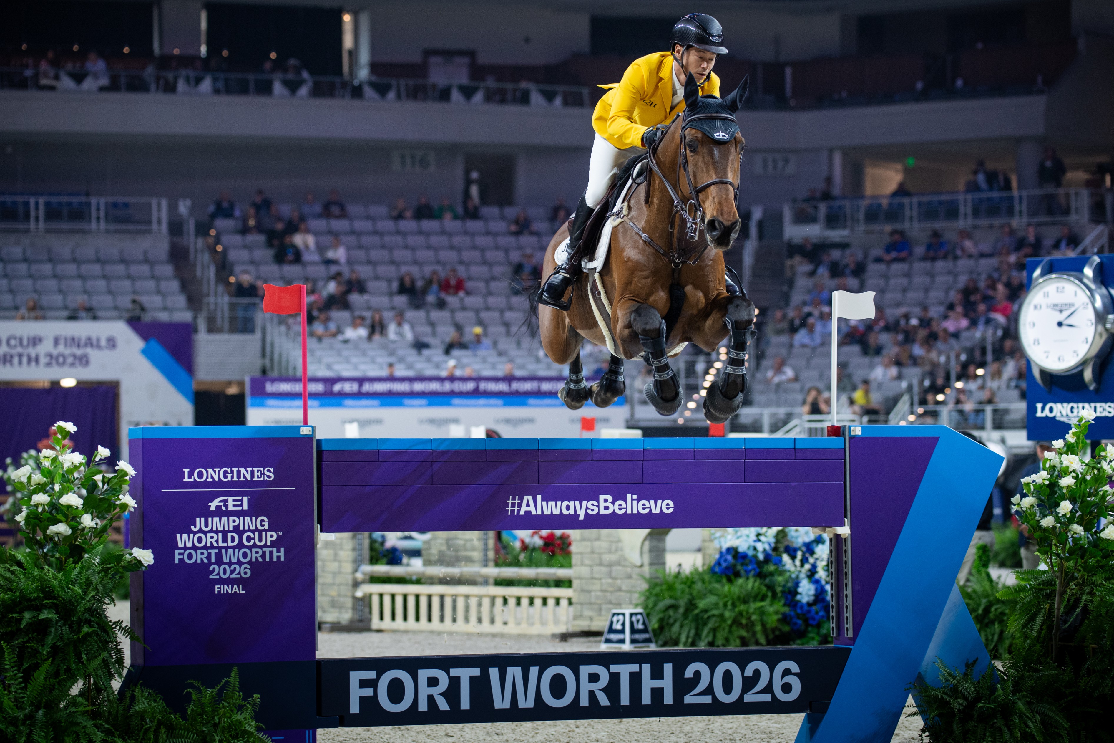 4月9日に競技がスタートした《FEI Jumping World CupTM Final》。第1競技のスピードクラスに佐藤英賢&チャデラーノJRAが出場しました。